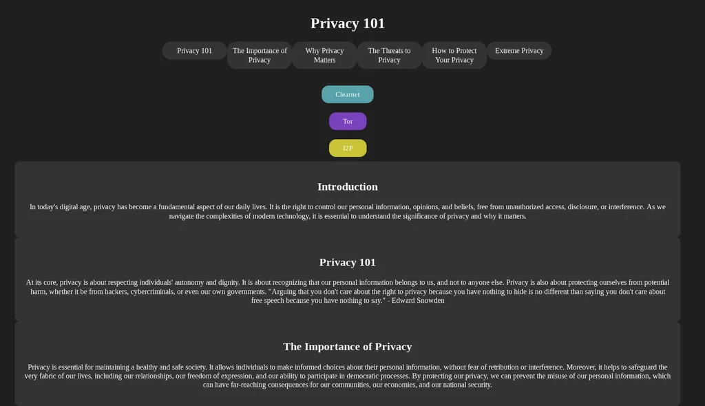 I am absolutely delighted to share with you the launch of my newly Privacy 101 Guide, now optimized for mobile devices and JavaScript-free approach! I believe that transparency and clear communication are essential in today's digital age.